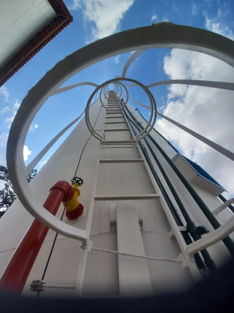 Projetado para proporcionar segurança e estabilidade nas partes superiores do reservatório, evitando riscos de acidentes durante inspeções e manutenções.